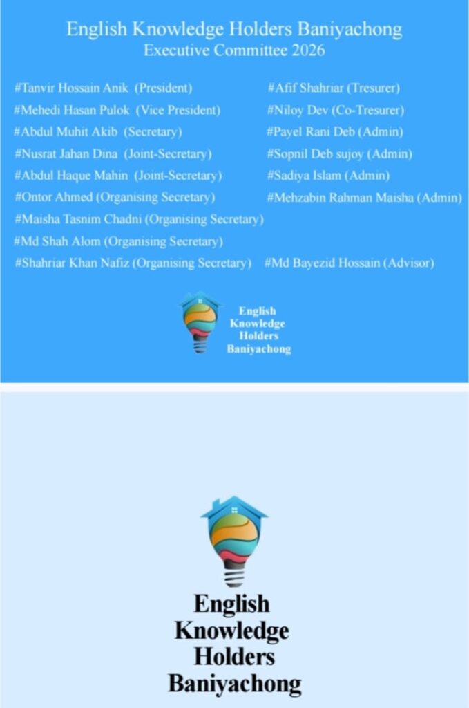 বানিয়াচংয়ে ঐক্য, নেতৃত্ব ও অগ্রযাত্রার অঙ্গীকারে শিক্ষা ও দক্ষতা উন্নয়নে কাজ করা স্বেচ্ছাসেবী সংগঠন English Knowledge Holders Baniyachong নতুন উদ্যমে যাত্রা শুরু করেছে। আনুষ্ঠানিক ঘোষণার মাধ্যমে সংগঠনের নির্বাহী কমিটি ২০২৬ পুনর্গঠন করা হয়েছে। নতুন কমিটি আগামী এক বছর শিক্ষার্থীদের দক্ষতা বৃদ্ধি, নেতৃত্ব বিকাশ এবং ক্যারিয়ার প্রস্তুতিতে কার্যকর ভূমিকা রাখবে বলে প্রত্যাশা করা হচ্ছে। সংগঠনের নেতৃবৃন্দ জানান,”সময় এখন দক্ষতা অর্জনের, আত্মনির্ভরতার এবং নেতৃত্ব তৈরির।” তারা বলেন, যেকোনো বিষয়ে পারদর্শিতা আজ বৈশ্বিক প্রতিযোগিতায় এগিয়ে থাকার অন্যতম প্রধান হাতিয়ার। সেই লক্ষ্যেই সংগঠনটি নিয়মিত সভা,সেমিনার ও বিভিন্ন কর্মসূচির আয়োজন করবে। নবগঠিত কমিটি ঐক্য, স্বচ্ছতা ও জবাবদিহিতার ভিত্তিতে সংগঠন পরিচালনায় অঙ্গীকারবদ্ধ হয়েছে। তরুণ নেতৃত্বের সমন্বয়ে গঠিত এই কমিটি বানিয়াচংয়ের শিক্ষার্থীদের জন্য নতুন দিগন্ত উন্মোচন করবে বলে আশাবাদ ব্যক্ত করা হয়েছে।
